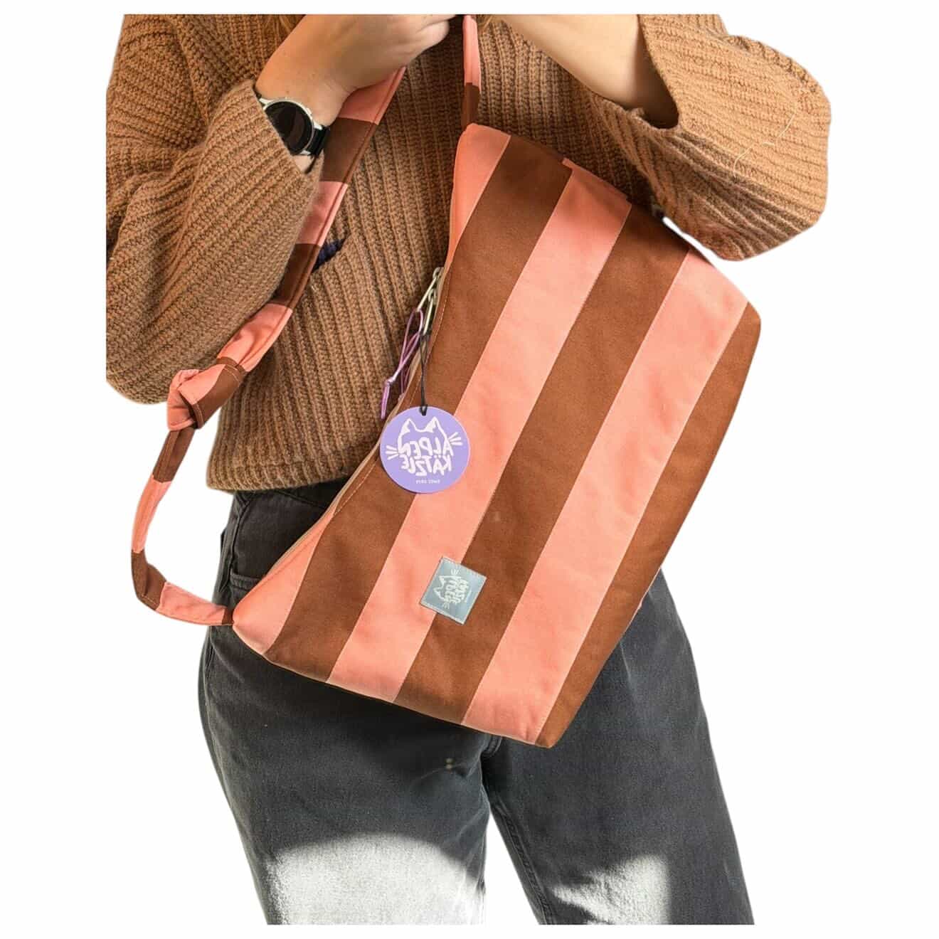 Schultertasche POLLY – Braun & Rosa Streifen
